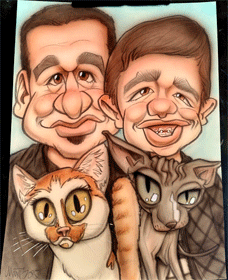 If considering having us do your caricature, please make sure you send us good quality photo references. Multiple photos with different angles work best. Pets count the same as people in the pricing. Artwork will be a sizable 12"x16" and mailed in a tube. Payment in full is required upon approval of the project by the artist. Payment is by Paypal only. Please e-mail your caricature requests to stantonarts@yahoo.com.